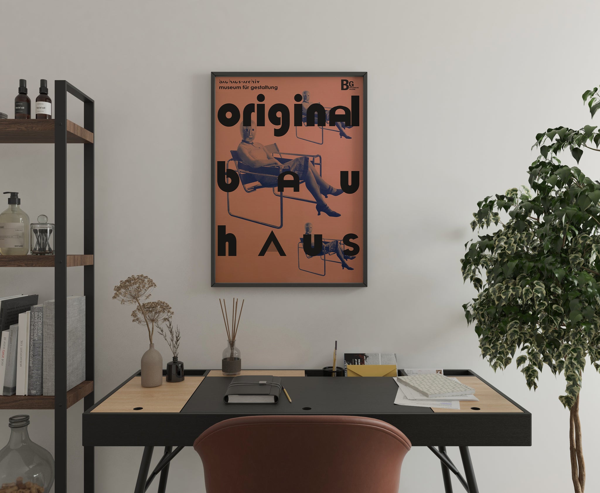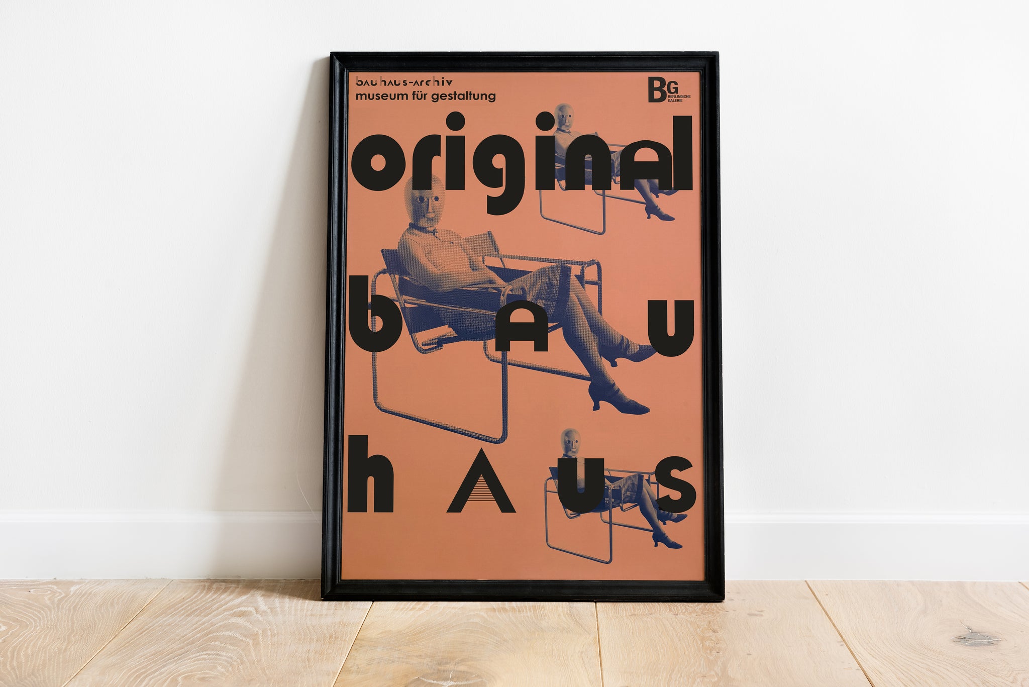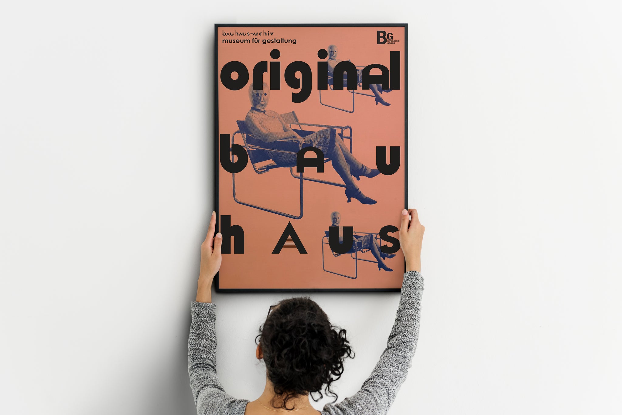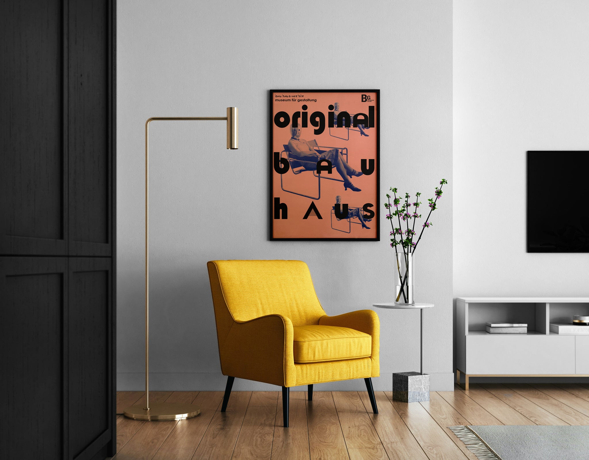 Iconic Bauhaus-inspired wall art featuring bold typography and the legendary Wassily Chair, creating a strong mid century modern statement for design-focused interiors.