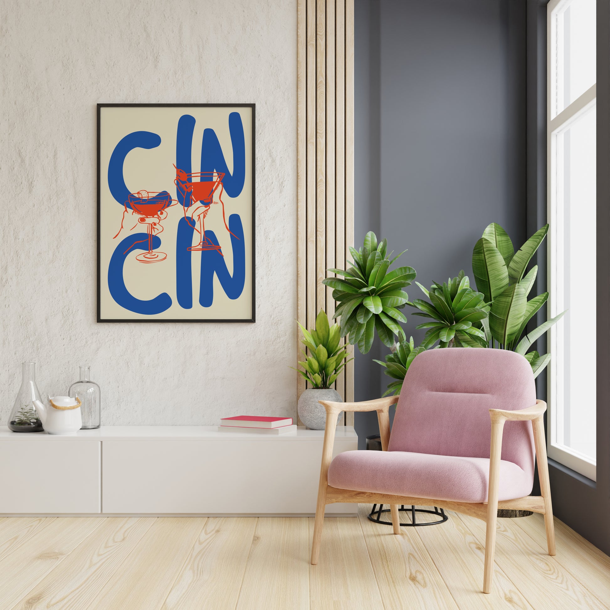 Cin Cin Cocktail Poster – Modern Wine & Aperitivo Wall Art Print