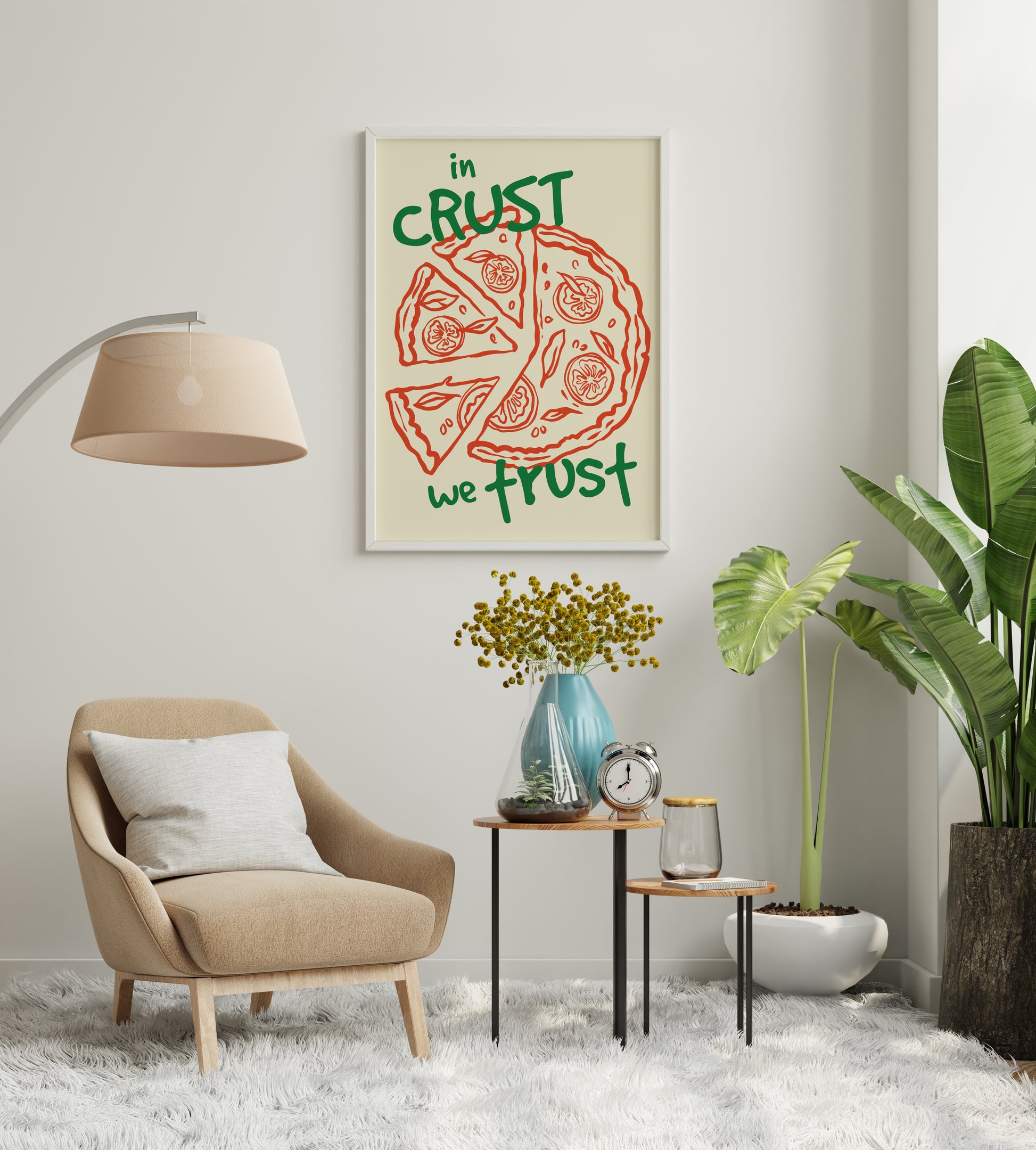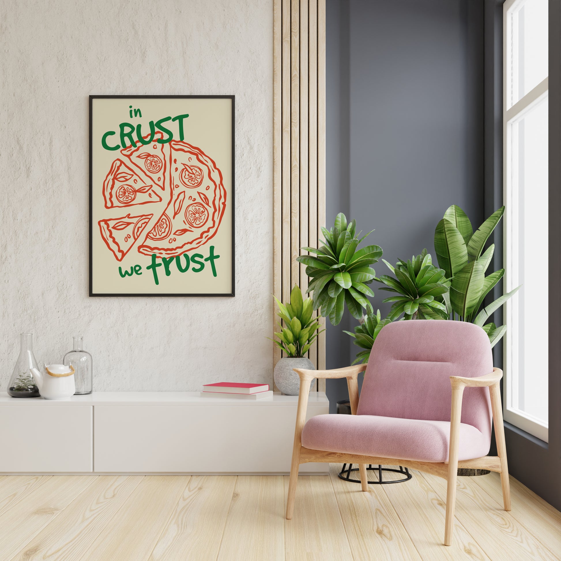 In Crust We Trust Pizza Poster – Food Quote Wall Art Print