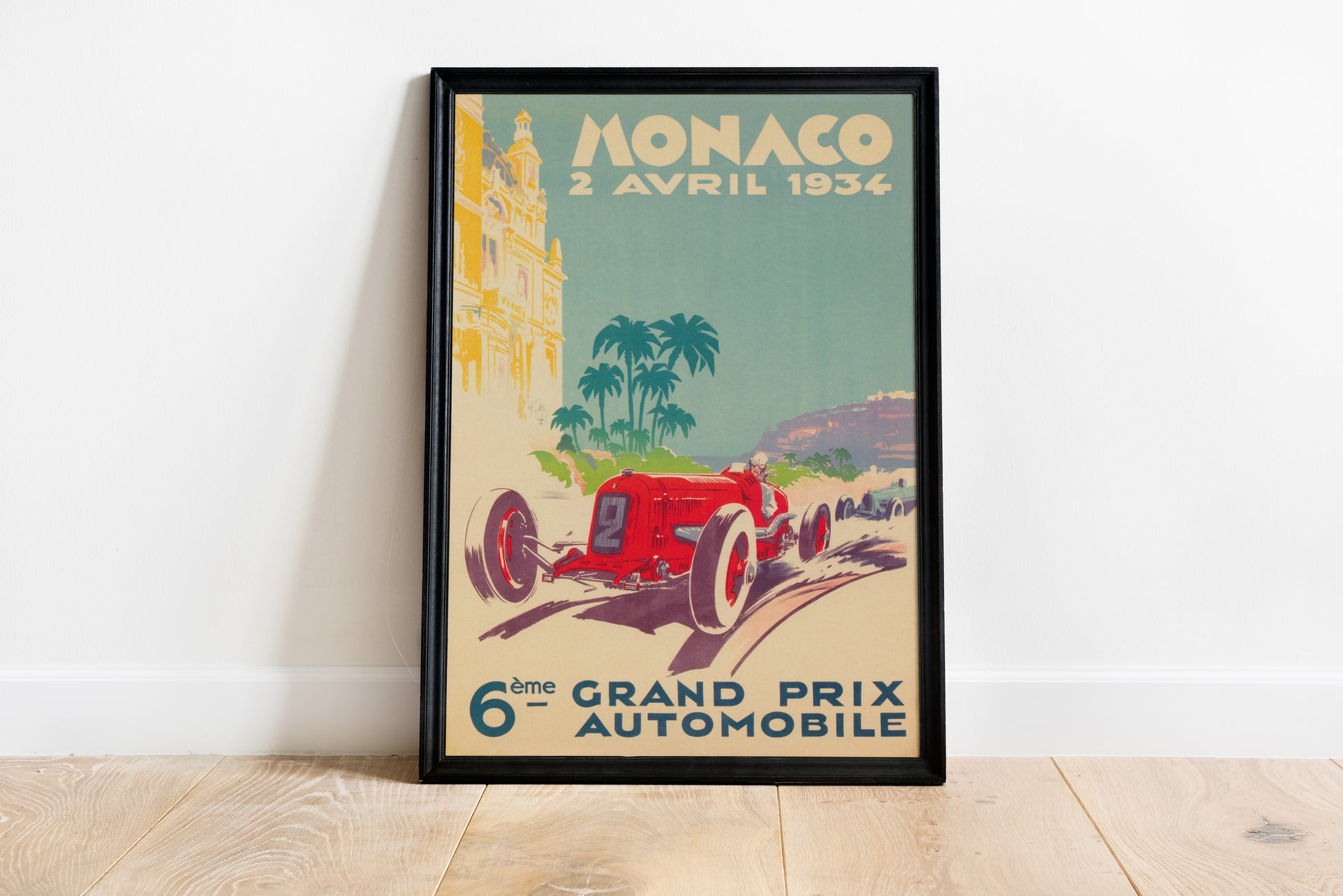 Monaco Grand Prix 1934 Vintage Racing Poster – Classic Automobile Wall Art Print