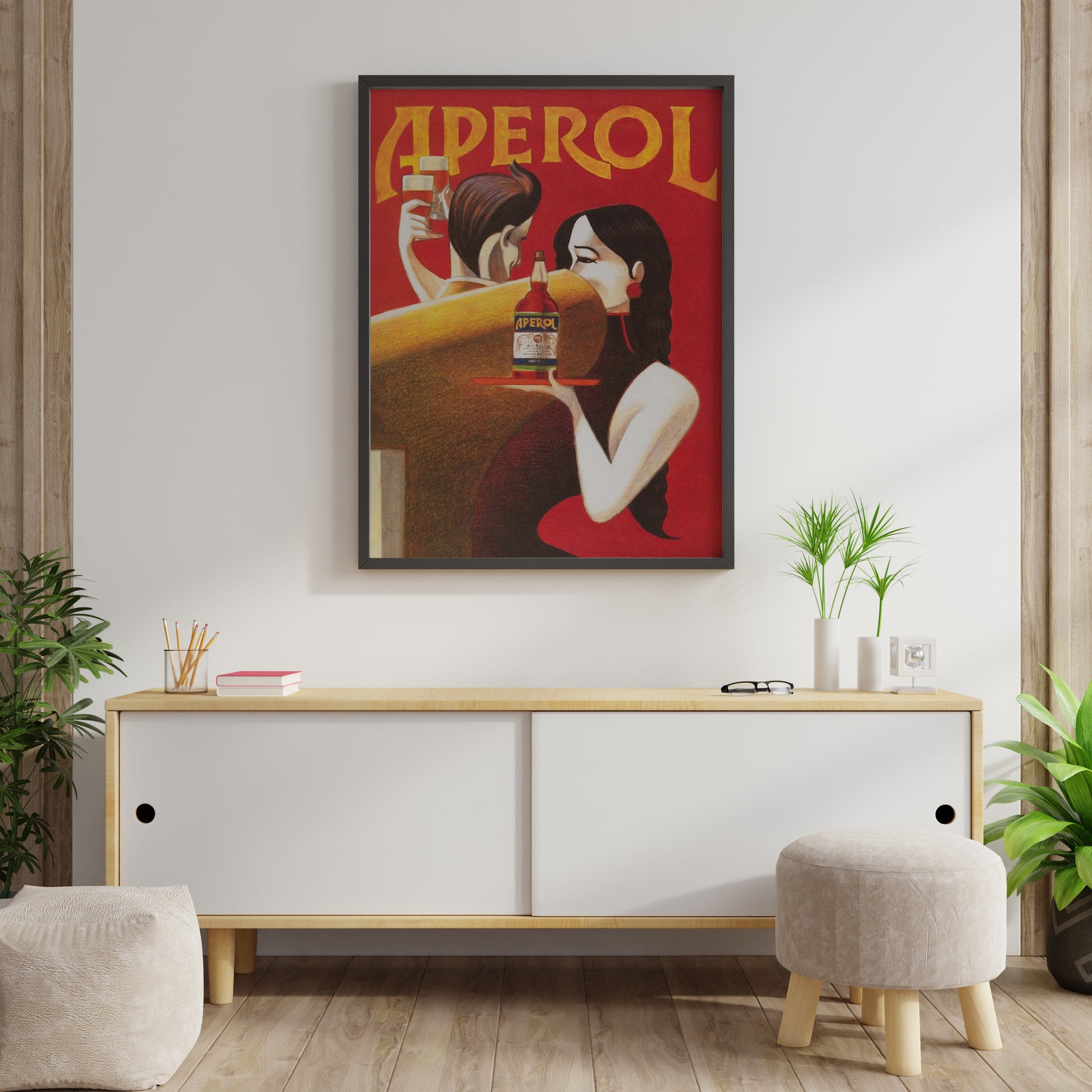 This vintage aperitif-inspired poster print adds warm colors and classic European charm to any space. Perfect for kitchens, dining areas, or home bars, it creates a stylish focal point with retro character. An eye-catching wall art print that elevates relaxed, social interiors.