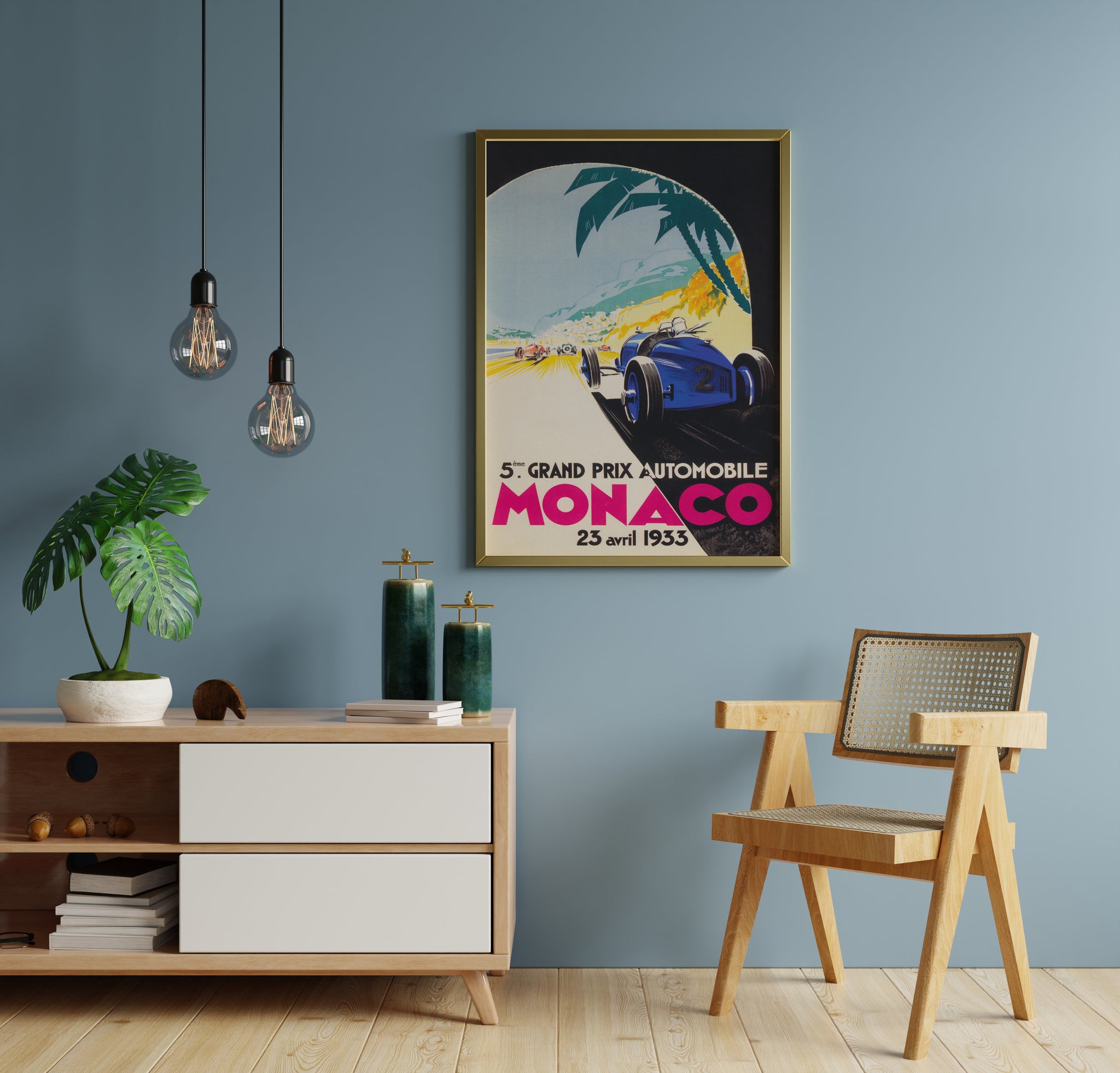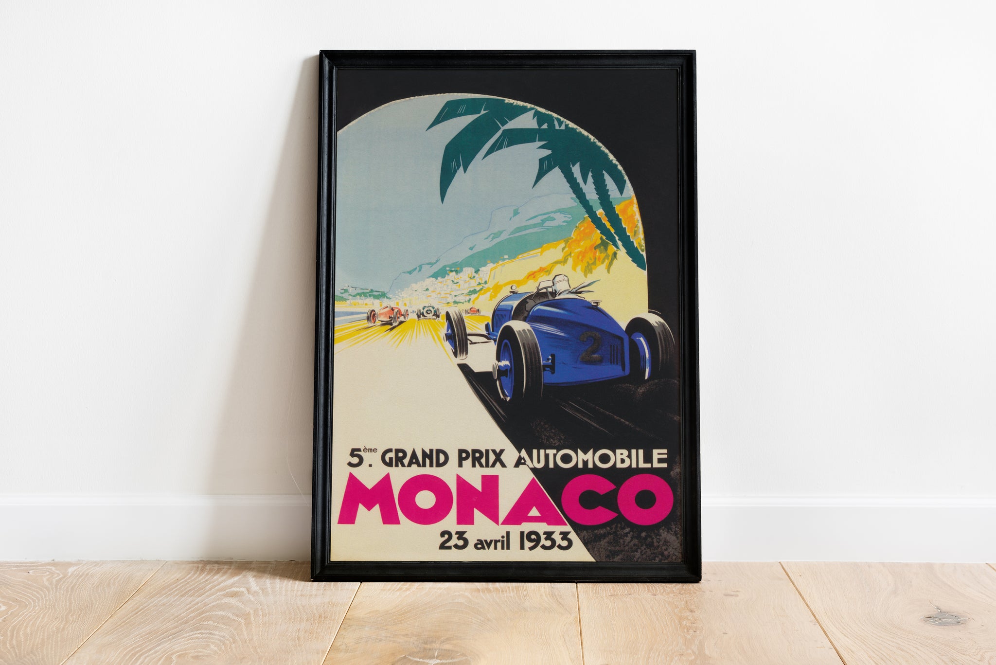 Vintage Monaco Grand Prix Inspired Poster Print – Classic Motorsport Wall Art for Office, Living Room & Home Decor